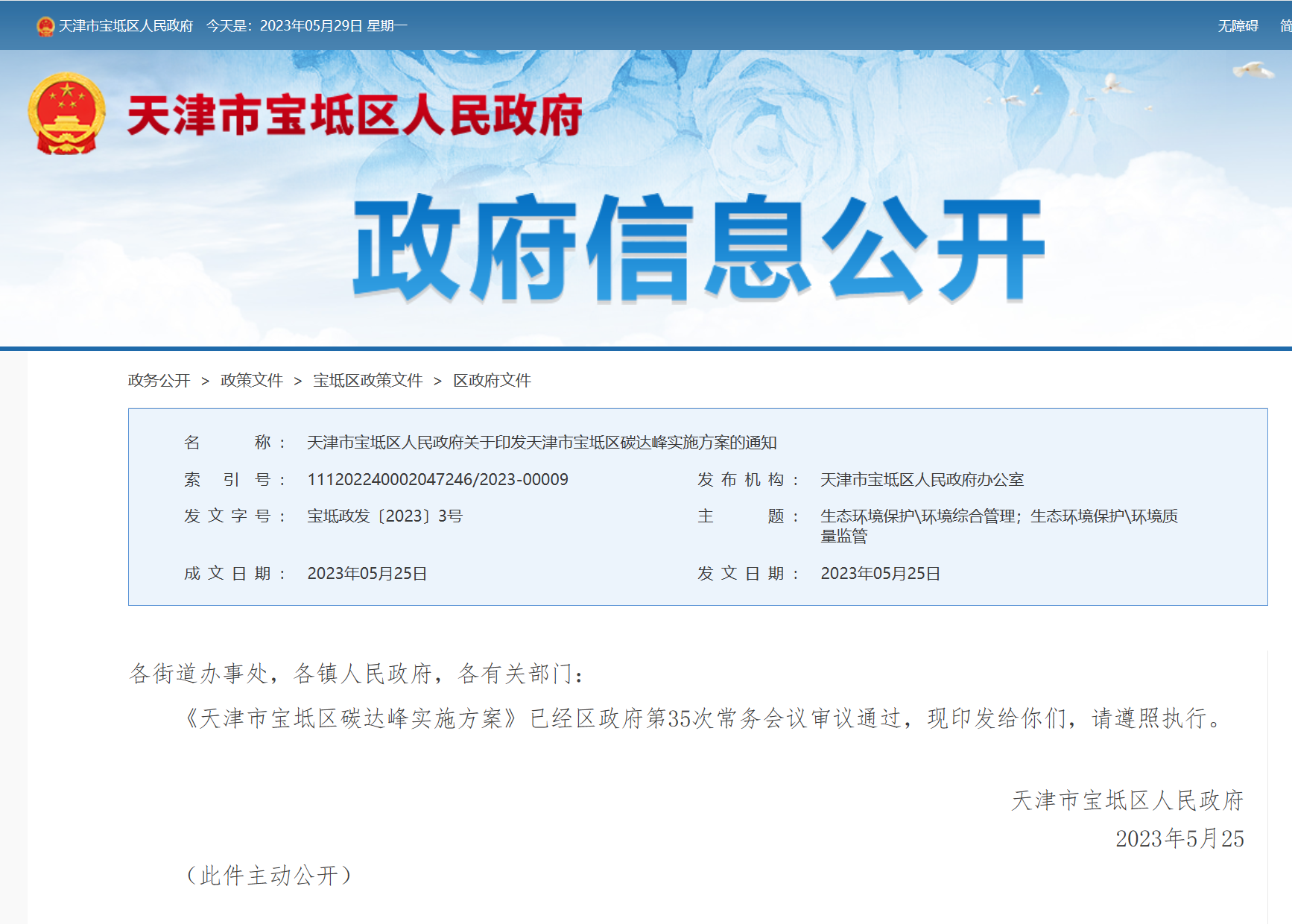 5月25日,天津市宝坻区人民政府印发《天津市宝坻区碳达峰实施方案》,到2025年,本区电网基本具备5%以上的尖峰负荷响应能力。