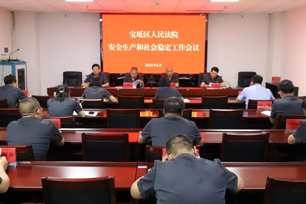 6月15日,宝坻法院组织召开安全生产和社会稳定工作会议,贯彻全市安全生产和社会稳定工作会议精神,对做好安全生产和社会稳定工作进行动员部署。院党组书记、院长于盛乐主持会议并讲话,院级领导及各部门负责人参会。