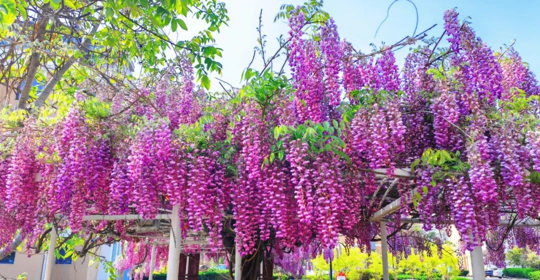 近日,城区公园、小区内的紫藤花陆续绽放,进入了一年之中的最佳观赏期,紫色的花朵好似串串风铃,微风起,流动的芬芳让人心醉。远远望去,花开如瀑,带来春日限定浪漫。